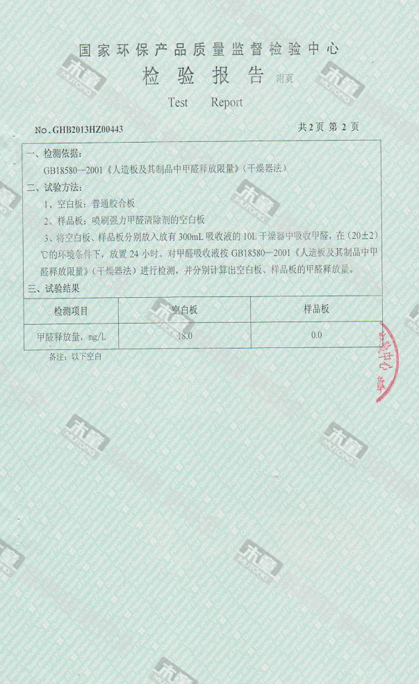 木童除醛2號三代效果檢驗報告2013
